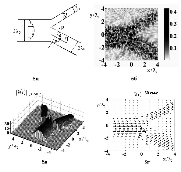 В группе разработаны аддитивно-корреляционный и мультипликативно-корреляционный методы решения задачи томографического восстановления картины распределения полного вектора скорости кровотока с помощью ультразвука на относительно низких частотах 1-2МГц, обеспечивающих достаточную глубину проникновения. При восстановлении векторной картины используется пространственно-корреляционная информация большого объема в тесной связи с процессом построения томографического изображения всего органа в целом. При этом применяется взаимная пространственная корреляция промежуточных изображений, за счет чего становится возможной оценка вектора скорости кровотока независимо от величины реального перемещения крови за полное время измерений. Получены результаты численного моделирования для постоянного и переменного распределений вектора скорости кровотока в поперечных сечениях кровеносных сосудов.