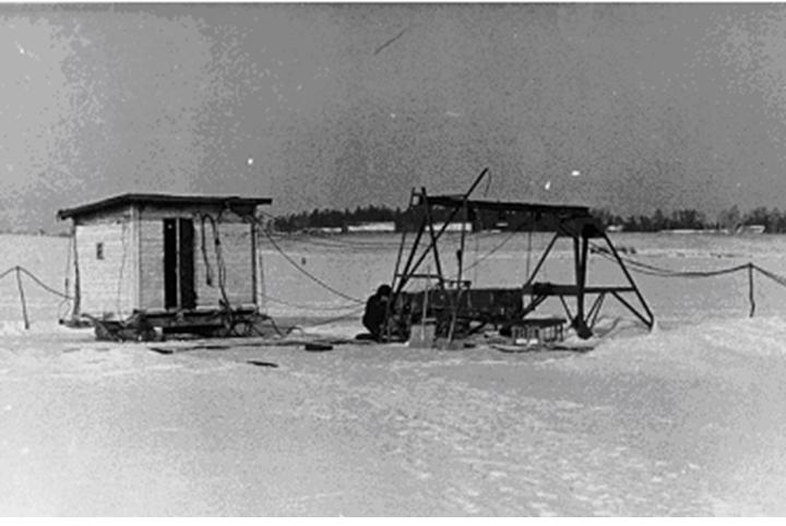 Рис.2. Зимние работы на Полигоне кафедры акустики на Пироговском водохранилище.