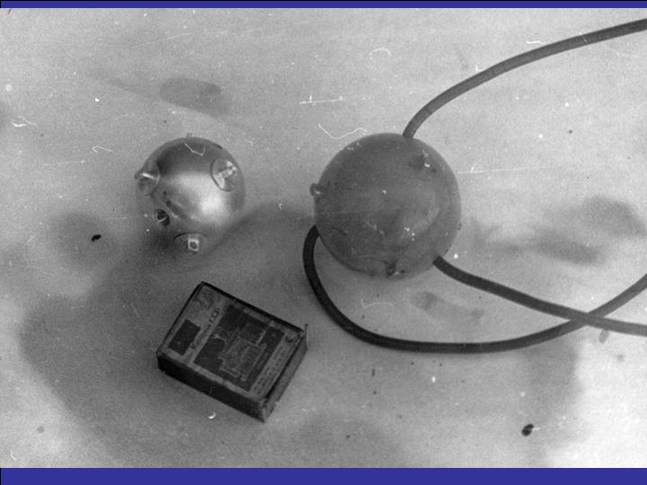 Следует отметить, что к тому времени антенна на базе векторных приемников уже была изготовлена и в НПО “Квант”. В основу разработки были положены разработанные в этом же институте электрокинетические приемники градиента звукового давления (рис.4) (фото любезно предоставлено сотрудником НПО "Квант" Дмитриевым В.Г.).